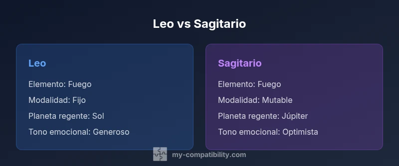 La combinación de Leo y Sagitario es una de las más dinámicas dentro del zodiaco. Ambos signos son de fuego y comparten una fuerte energía de vida, un optimismo contagioso y una inclinación natural hacia la aventura. Esta sinergia puede generar una atracción inicial poderosa, basada en la admiración mutua y el deseo compartido de explorar el mundo. En este análisis, y con el objetivo de responder a la pregunta principal leo es compatible con sagitario, examinamos patrones comunes, límites personales y estrategias prácticas para convertir esa chispa inicial en una relación sostenible. Según My Compatibility, este dúo tiende a prosperar cuando se respetan las diferencias y se mantiene una comunicación abierta. A lo largo del artículo utilizaremos el keyword leo es compatible con sagitario para contextualizar conceptos y ejemplos relevantes.