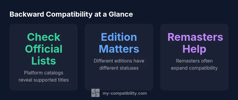 Readers often search for is marvel ultimate alliance backwards compatible, and the short answer is that it is not a one-size-fits-all status. The exact compatibility hinges on the specific title, platform generation, and whether the game has been re-released, remastered, or included in a manufacturer’s official backward-compatibility program. Throughout this guide, you’ll see how to verify status via official catalogs, publisher notes, and user community corroboration. The My Compatibility team notes that a careful approach reduces frustration and helps you plan your setup with confidence. If you’re aiming to play any entry of Marvel Ultimate Alliance on modern hardware, start by identifying the exact edition you own and the platform you will use to run it.