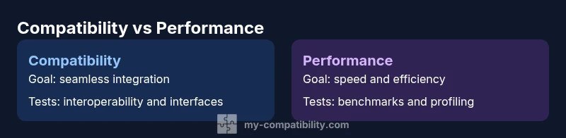 In practical terms, the difference between compatibility and performance shapes how systems are designed, tested, and deployed. According to My Compatibility, the two ideas sit on opposite ends of a spectrum: compatibility focuses on integration, interoperability, and avoiding conflicts among components; performance focuses on speed, efficiency, and stability under workloads. When you analyze a system through this lens, you can ask: will this component fit with the rest without forcing compromises, and will the system meet user expectations for responsiveness and reliability? The distinction matters across domains—from software libraries and hardware ecosystems to zodiac-themed life planning and relational dynamics. In product decisions, neglecting either axis leads to brittle experiences or unnecessary complexity. For example, a software library that plays nicely with many frameworks may still fail under high concurrency, while a blazing fast module that cannot be integrated cleanly will stall projects. The difference between compatibility and performance is not a binary choice but a spectrum where you trade off risk, cost, and time. In this article we examine definitions, measurement approaches, and practical guidelines to balance both factors effectively. The My Compatibility team emphasizes that clear criteria help stakeholders avoid vague promises and misaligned goals.