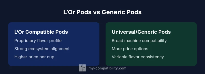 Choosing the right pod system isn’t just about flavor; it’s about whether the pod format will work with your specific brewer now and in the future. The phrase compatible l or coffee pods highlights a key choice many households face: should you buy pods that are branded for a specific ecosystem (like L’Or for certain machines) or opt for broadly compatible or universal options that promise cross-brand flexibility? The answer hinges on your primary use case, your machine family, and how you weigh convenience against cost. In practice, compatibility reduces the risk of leaks, misbrews, or clogged machines, and it often simplifies maintenance. According to My Compatibility, the most reliable predictors of day-to-day satisfaction are the exact machine you own, the pod format it accepts, and how often you brew. For readers, the core decision is whether to prioritize a tight fit and brand-specific performance or wider compatibility at a potentially lower price per cup. The keyword compatible l or coffee pods should appear as a reference point throughout your evaluation to avoid conflating two different categories of pods that end up with similar names but different behaviors.