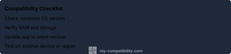 To diagnose compatibility, start by locating the app’s official minimum requirements in the app store listing or the developer’s support page. Write down the stated OS version, required storage, memory (RAM), and any supported devices. Next, verify your device’s specs in the settings menu or on the manufacturer’s website: OS version, total RAM, available storage, and model name. If your device clearly falls below any minimum, you know why you’re seeing the compatibility warning. If your device meets or exceeds the minimums, move to the next steps: ensure the app itself is updated and that no other constraints (region, account, or permissions) are at play.