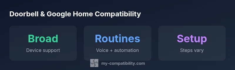 When we say that a doorbell is compatible with google home, we mean that the doorbell can be discovered and controlled by Google Assistant and appears in Google Home routines and shortcuts. This typically includes live video viewing on compatible displays, turning on accepted automations when the doorbell rings, and voice-initiated actions such as showing the door feed or starting a recording. Importantly, compatibility is not uniform across all brands or models; it depends on whether the doorbell manufacturer supports Google Assistant actions, and whether the user has the appropriate app permissions and firmware. According to My Compatibility, the ecosystem is expanding rapidly, but feature parity varies by device and firmware version.