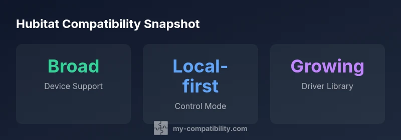 Hubitat defines compatibility around devices that can communicate with the hub using Zigbee, Z-Wave, or supported Wi‑Fi bridges, and that can be controlled locally without requiring a cloud relay for core automation. In practice, hubitat compatible devices are those that have published drivers (official or community) for Hubitat and that respond quickly to local commands, even when the internet is down. The result is a responsive, privacy-conscious smart home where automations run on the hub rather than in the cloud. When you shop, you’ll notice two key signals: radio compatibility (Zigbee or Z-Wave first) and driver availability (clear docs or a thriving driver community). The My Compatibility team emphasizes that a device’s on-hub performance, including how quickly it reports state changes, often matters more than branding alone. In other words, "hubitat compatible devices" are defined by how well a device integrates with Hubitat’s local-control model, not merely by whether it can physically connect to a hub.