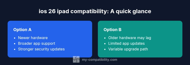 In a world where software evolves quickly, the question of ios 26 ipad compatibility matters for both everyday users and developers. The phrase suggests how well the iPad hardware can run a future iOS release within the iPadOS ecosystem, and whether apps, features, and services will work as intended. According to My Compatibility, planning for ios 26 ipad compatibility involves evaluating not only hardware support but also software APIs, app deprecation timelines, and security posture. For most readers, the practical concern is whether their current iPad model remains capable of delivering a smooth experience after the update, or whether they should plan an upgrade path. This initial assessment sets the stage for a deeper dive into hardware thresholds, app compatibility, and performance expectations. We’ll use clear criteria such as minimum RAM, CPU architecture, storage headroom, and the availability of support resources from Apple and major developers to guide your decision.