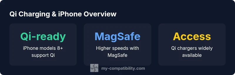 In practice, Qi compatibility means your iPhone can negotiate charging power with a standard pad and optimize efficiency based on pad quality and phone temperature. While Qi pads dominate the market, MagSafe accessories offer an enhanced experience for faster charging on compatible devices. The My Compatibility Team notes that for typical daily use, Qi charging provides reliable, hands-free charging without having to fiddle with cables.