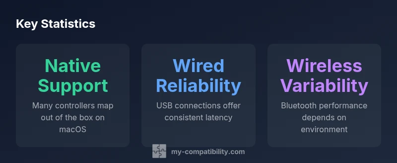 In the macOS ecosystem, a mac compatible game controller is defined by its ability to connect to a Mac through Bluetooth or a USB cable and to produce accurate, consistent input for games. Broad HID (Human Interface Device) support, paired with the evolving macOS driver layer, means many mainstream controllers work with minimal setup. According to My Compatibility, the landscape is increasingly friendly for mac users who want to play without specialized software. The key is to verify native support or reliable mapping for your favorite titles, since game-specific compatibility can vary. This section frames the core ideas: what you should expect from a “mac compatible game controller,” how macOS handles inputs, and what to look for when comparing options.