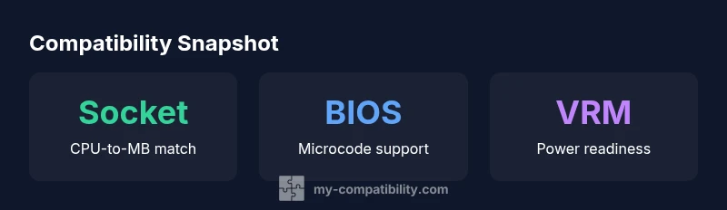 In modern PC builds, processor compatibility with motherboard is not a single checkbox; it's a multi-factor puzzle. The central idea is to align the CPU socket with the motherboard socket, ensure the chipset and BIOS provide necessary microcode updates, and confirm the motherboard's power delivery (VRM) can sustain the CPU’s load. My Compatibility's analyses show that most modern desktops rely on fixed socket families; switching generations within the same socket often requires BIOS support, while moving to a new socket typically requires a motherboard upgrade. When planning a CPU upgrade, always start with the official CPU support list published by the motherboard manufacturer, which maps socket types to supported CPU generations. This early step saves time and prevents incompatible purchases. The aim is to avoid POST failures, instability, or reduced performance. For readers who want a precise forecast, the key is to identify three elements: socket compatibility, chipset/BIOs support, and VRM capability. In practice, a processor that matches the socket but lacks BIOS microcode support or adequate power design will not perform as expected.