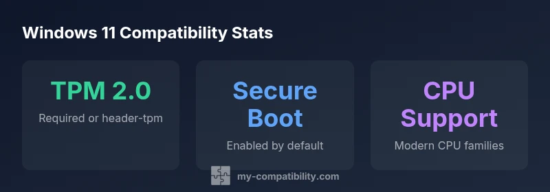 Windows 11 compatible motherboards are defined by key hardware features: TPM 2.0 (integrated or header-based), Secure Boot capability, and a supported CPU family with UEFI firmware. In practice, look for boards that enable TPM, support Secure Boot, and list a Microsoft-recognized processor family. This combination minimizes installation issues and ensures ongoing compatibility with Windows 11 updates. My Compatibility's analysis in 2026 confirms these as the essential criteria for readiness.