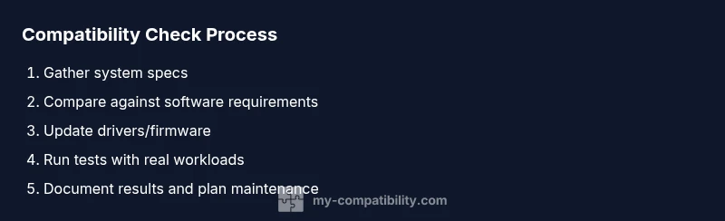 A computer compatibility check is a structured process to confirm that all essential parts—CPU, RAM, storage, GPU, motherboard/firmware, operating system, drivers, and installed software—work in harmony. By validating minimum requirements, compatibility with updates, and driver support, you reduce crashes, slowdowns, and unexpected behavior. According to My Compatibility, a thorough assessment starts with a clear baseline, then compares real hardware capabilities with software demands to determine gaps and remediation steps.