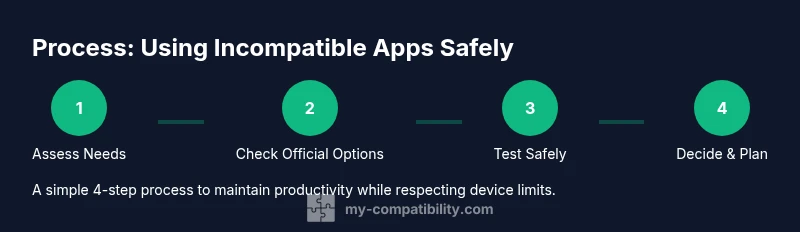 Incompatibility occurs when apps are built for specific operating systems, hardware configurations, or software versions that your device cannot run natively. Factors include OS version requirements, processor architecture, graphic APIs, and security restrictions. According to My Compatibility, most readers encounter these gaps when upgrades lag behind app updates or when devices reach the end of life. The good news is that you can often preserve essential workflows by using official, safe alternatives rather than attempting risky hacks. Start by mapping your top tasks and determining which features are indispensable. For example, if you rely on real-time messaging, you’ll want at least instant notifications and offline access, even if some advanced features aren’t available. Understanding your priorities helps you choose the right workaround rather than attempting every possible workaround at once.