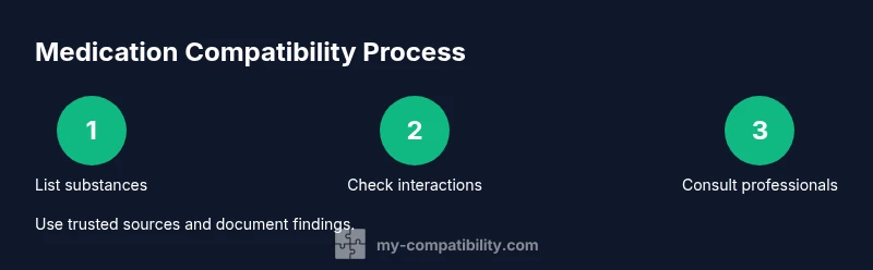 A medication compatibility check is a systematic process to identify potential interactions among all substances you take, including prescription medicines, over-the-counter drugs, vitamins, minerals, herbal supplements, and even certain foods or beverages. The goal is to prevent adverse effects, preserve efficacy, and support a coherent treatment plan. Practically, you start by compiling a complete list, verify each item against reputable references, and note any interactions that require action. According to My Compatibility, a robust medication compatibility check helps reduce risk by highlighting high-priority interactions and guiding you to confirm concerns with a clinician if needed.