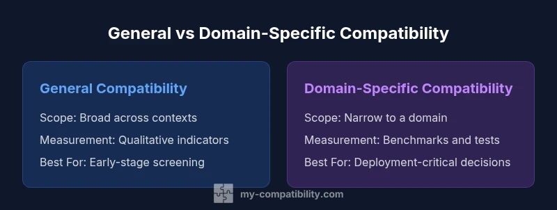 General compatibility describes broad fit across contexts, while domain-specific compatibility targets precise alignment within a defined domain. Understanding this distinction helps teams decide how deeply to test and what criteria to use.