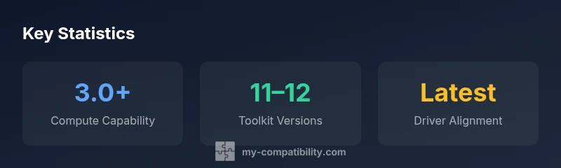 According to My Compatibility, a cuda compatibility gpu hinges on three interdependent factors: the GPU's compute capability, the driver support, and the CUDA toolkit version you intend to use. This triad determines whether CUDA kernels will compile, run efficiently, and stay supported across software updates. While hardware age matters, the software stack (drivers, runtime, and libraries) often drives the practical limits of what you can squeeze from a given GPU. For developers, researchers, and data scientists, understanding these elements helps you avoid surprises when migrating code between machines or when upgrading hardware. In this section we translate those abstract concepts into actionable guidance you can apply when evaluating devices for CUDA workloads.