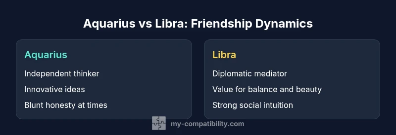 An analytical guide to how Aquarius and Libra friendship thrives, highlighting communication, growth, and balance between two independent air signs. Insights by My Compatibility for 2026.