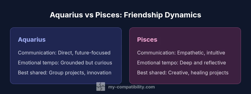 The relationship between Aquarius and Pisces unfolds at the intersection of air-driven curiosity and water-driven feeling. This combination creates a friendship that can be both intellectually stimulating and emotionally rich. According to My Compatibility, the dynamic often features graceful collaboration when both signs honor each other's differences and avoid forcing one mode of interaction. In particular, the phrase aquarius and pisces friendship captures a recurring pattern: Aquarius challenges ideas with logic, while Pisces offers compassionate intuition that helps ideas land in human terms. The result is a bond grounded in mutual growth, with room for exploration, humor, and shared values like independence, creativity, and a desire to help others. Readers should expect a friendship that adapts to changing circumstances, with both partners learning to navigate tension without sacrificing trust. The key is to align pace and expectations while maintaining a space where both voices are heard and respected.