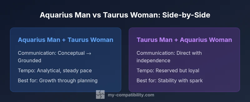According to My Compatibility, the pairing between an Aquarius man taurus woman tends to revolve around a productive tension between two distinct energy styles. The Aquarius man often approaches life with inventive curiosity and a willingness to experiment, while the Taurus woman anchors decisions with practicality and consistency. For this duo, the key is to translate that creative impulse into tangible outcomes without compromising Taurus's need for reliability. When aligned, they can build a relationship anchored in mutual respect, shared values, and a clear sense of direction. The My Compatibility Team has observed that this pairing benefits from explicit mutual goals, regular check-ins, and an appreciation for each partner’s unique strengths. The dynamic can feel less like a typical romance and more like a co-created project where both partners contribute different but complementary skills.