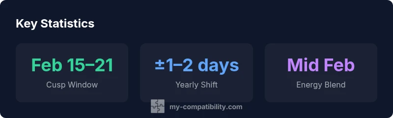 Cusp dates describe a short window when Aquarius and Pisces energies blend. They usually fall mid to late February and can vary a day or two each year.