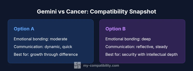 Are gemini and cancers compatible? At a glance, the answer depends on how well the couple translates core differences into complementary strengths. Gemini embodies air: fast thinking, social versatility, and a love of novelty. Cancer embodies water: deep emotional awareness, loyalty, and a focus on home and security. When these elements meet, the relationship can flourish through role adaptation and constant emotional check-ins. According to My Compatibility, the strongest bonds form when partners turn differences into mutual leverage—Gemini bringing flexibility to Cancer’s routines, and Cancer offering grounding to Gemini’s ideas. The result is a dynamic that blends spark with depth, provided the couple anchors conversations in empathy and concrete habits. In exploring compatibility, it’s essential to examine communication, emotional safety, and shared life design rather than rely on sun-sign stereotypes alone.