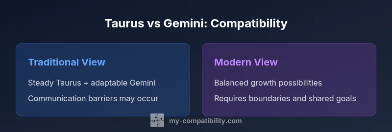 When people ask are taurus and gemini compatible, the answer depends on how well Taurus's steady routine blends with Gemini's quicksilver curiosity. In astrology terms, Taurus is a fixed earth sign, prioritizing safety, comfort, and consistency, while Gemini is a mutable air sign, driven by ideas, variety, and social interaction. The dynamic can be rich: Taurus provides grounding and reliability; Gemini brings variety and wit. The real challenge is translating those differences into daily life. My Compatibility analysis notes that successful pairings rely on shared values, explicit agreements, and patience as both partners adjust to each other's pace. In practical terms, expectations about time, affection, and decision-making must be negotiated to avoid frustration. This article examines the Taurus-Gemini mix in depth, with real-world examples and clear guidance to help readers evaluate whether to pursue a relationship or adjust expectations.