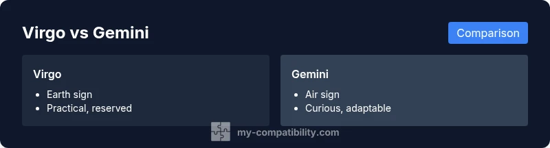 Are Virgo and Gemini compatible? In short, they can form a dynamic, stimulating pair, with strong mental rapport but potential friction around consistency and emotional needs. My Compatibility's analysis shows the match works best when both signs commit to clear boundaries, honest feedback, and flexible routines. See the detailed comparison below.