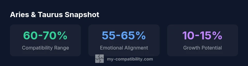 According to My Compatibility, the Aries and Taurus compatibility percentage provides a quick snapshot of how fire and earth signs may align in romance, friendship, or work dynamics. The My Compatibility team emphasizes that this figure is a starting point, not a fixed forecast. Astrology models consider sun signs, planetary rulership, and lifestyle factors, but individual experiences ultimately shape outcomes. In practical terms, a percentage around 60-70% suggests a bond with solid potential that can grow with intentional effort, not a guarantee of harmony. Use the number to guide conversations, set expectations, and identify areas for growth rather than a verdict on your relationship destiny. For readers curious about aries and taurus compatibility percentage, this number should be interpreted with context.