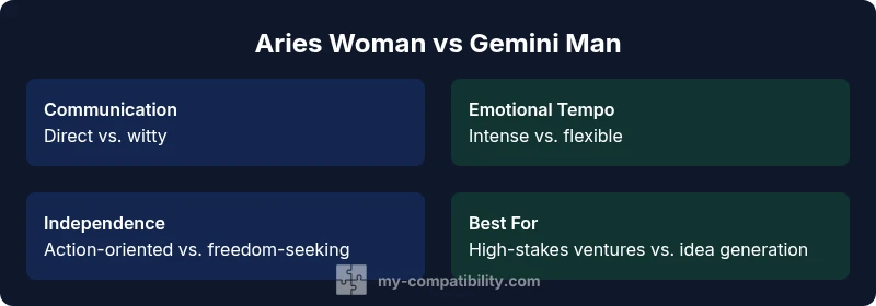 Comprehensive, data-driven comparison of Aries woman and Gemini man compatibility. Analyze communication, independence, and growth with actionable advice and scenarios.