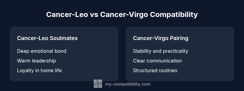 | Feature | Cancer-Leo soulmate pairing | Cancer with Virgo soulmate pairing |