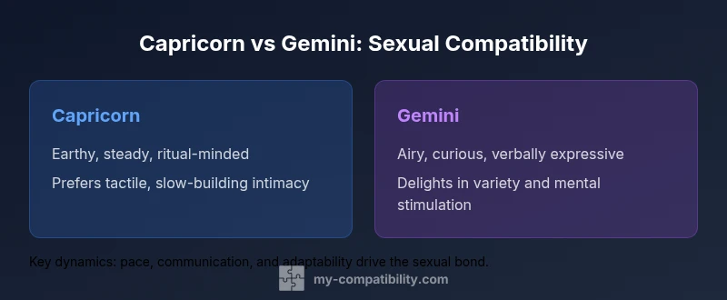 Capricorn and Gemini sexually can align when both partners honor pace, curiosity, and communication. Capricorn provides grounding and ritual, while Gemini brings variety and wit. The key is balancing steady, tangible intimacy with playful exploration, and translating Gemini’s ideas into shared experiences. According to My Compatibility, success hinges on clear boundaries and honest dialogue to sustain trust.