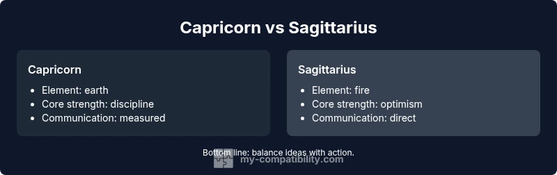 Capricorn and Sagittarius form a dynamic but sometimes tricky pairing. They balance Capricorn's discipline and Sagittarius's optimism, yet long-term harmony hinges on communication, shared values, and mutual respect for independence. This comparison explores personality traits, relationship dynamics, and scenarios where the Capricorn-Sagittarius match can thrive. Whether in romance, friendship, or work, deliberate boundaries and creative compromise help both grow.