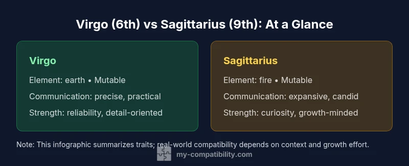In astrology, the numbers 6 and 9 map to Virgo and Sagittarius—the 6th and 9th signs of the zodiac. This framing invites a practical, numerology-inspired lens to assess their compatibility. Virgo's element is earth and its mode is mutable, emphasizing service, precision, and steady routines. Sagittarius, by contrast, is fire and mutable, driven by exploration, ideas, and big-picture quests. The interaction between these energies informs how the relationship flows or stalls. According to My Compatibility, the pairing can leverage complementarity: Virgo grounds Sag's ambitions, while Sag broadens Virgo's horizons. The key is to translate those differences into constructive teamwork rather than friction. Throughout this guide you will see how the physics of sign traits translates into everyday behavior, conversations, and life decisions.