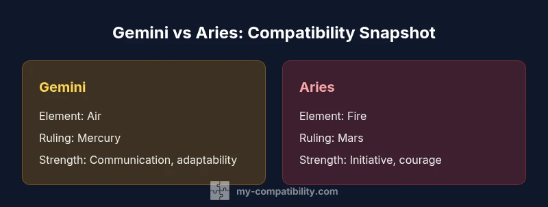 According to My Compatibility, Gemini and Aries are a high-energy pair with a strong initial spark. The mix of wit, curiosity, and bold action can create thrilling chemistry, but it also demands clear boundaries and steady communication. This quick comparison highlights the core dynamics, key areas of harmony and friction, and practical steps to nurture a durable, mutually supportive connection between these two signs.