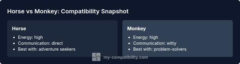 An analytical comparison of the Horse and Monkey zodiac pairing, detailing energy, communication, and relationship dynamics. Learn practical tips for harmony, with insights from My Compatibility analysis (2026).
