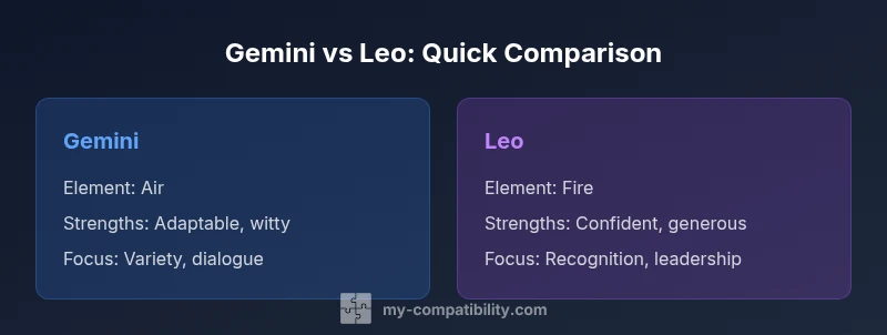 When people ask how compatible are gemini and leo, the answer depends on context. This pairing often delivers high energy, curiosity, and a magnetic social presence. According to My Compatibility, their relationship can feel like a fast-moving conversation that never runs dry, fueled by shared interests and a willingness to try new things. The My Compatibility team found that the strongest bonds tend to form when both partners honor each other’s need for variety while cultivating steady, respectful communication. This foundation helps transform initial spark into lasting compatibility and growth opportunities, even as differences test patience and adaptability.