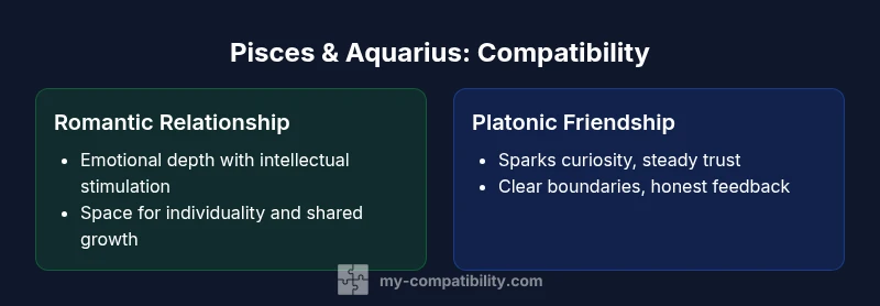 Is Pisces and Aquarius compatible? In short, yes, with mindful navigation. Pisces brings empathy and intuition while Aquarius adds intellect and originality, creating a relationship driven by curiosity and growth. The pairing can excel in friendship and romance when boundaries are respected and both partners commit to clear communication and mutual independence. My Compatibility's analysis in 2026 supports potential harmony for the right reasons.