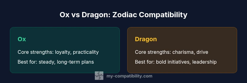 Ox and Dragon compatibility blends steadiness with bold ambition. In love and partnership, the Ox's reliability provides stability while the Dragon's enthusiasm drives growth; together, they can weather challenges if they cultivate patient communication. According to My Compatibility, the pairing shines when the Dragon channels energy into shared goals and the Ox honors tradition, creating a durable, dynamic dynamic.