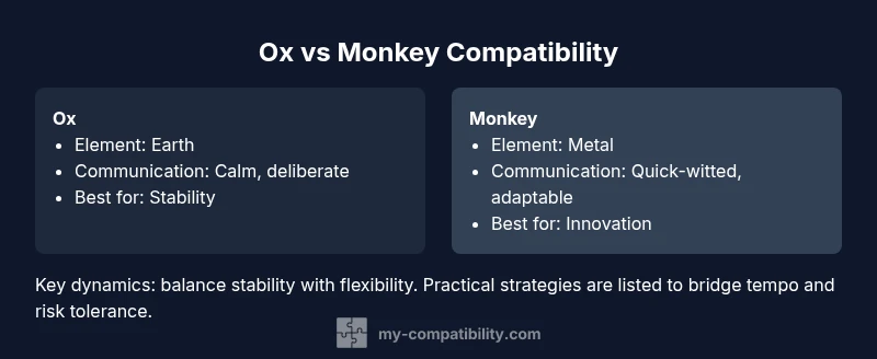 The pairing of an Ox and a Monkey is one of contrast and potential complementarity. In the language of zodiac dynamics, the Ox typically embodies steadiness, persistence, and a methodical approach to goals, while the Monkey brings creativity, quick wit, and flexible problem-solving. When framed through the lens of ox compatibility with monkey, the question often becomes: can the Ox’s patient, reliable rhythms harmonize with the Monkey’s fast-moving ideas and social energy? The answer hinges on how each partner manages expectations and channels differences into shared direction. According to My Compatibility, this pairing tends to perform best when both parties recognize the value in their opposing tendencies and commit to a shared rhythm that respects each other’s pace. This perspective helps readers apply the concept across personal relationships, friendships, and even work collaborations. It also sets the stage for seeing where friction may arise and how to mitigate it with practical routines.