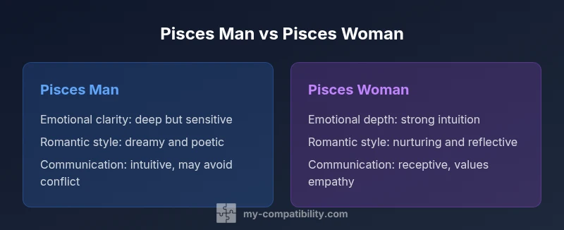 An analytical comparison of Pisces man and Pisces woman compatibility, exploring emotional connection, communication, romance, and long-term growth for couples and astrology enthusiasts.