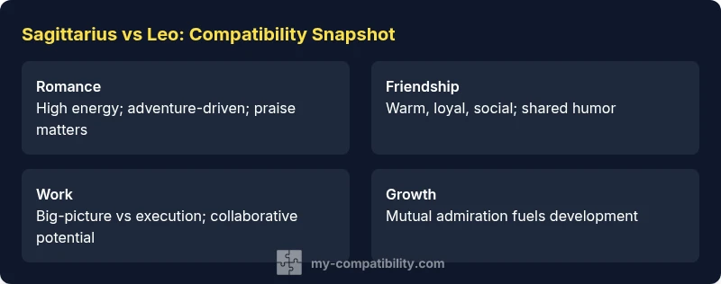 | Feature | Sagittarius-Leo romance | Sagittarius-Leo friendship |