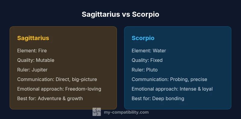 An analytical comparison of Sagittarius and Scorpio compatibility, examining strengths, challenges, communication styles, trust dynamics, and practical tips for building a lasting bond between fire and water signs.