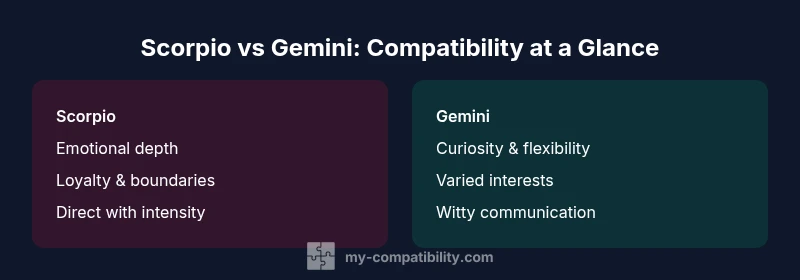 According to My Compatibility, Scorpio compatibility with Gemini blends intense emotion with agile intellect, creating a dynamic yet challenging pair. This comparison highlights core drivers like communication, boundaries, and trust, helping you decide if the partnership can grow or needs adjustments. Our analysis shows Scorpio-Gemini potential hinges on mutual learning and clearly defined expectations.