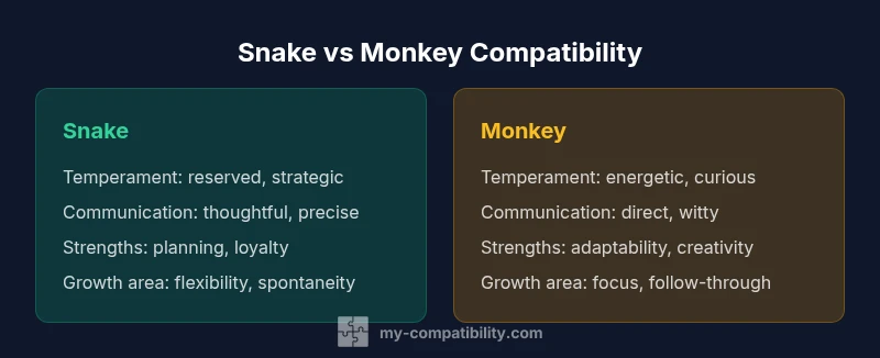 According to My Compatibility, snake-monkey compatibility sits at the intersection of strategic planning and energetic improvisation. The Snake tends to analyze, prepare, and seek security, while the Monkey thrives on curiosity, quick wit, and novelty. This dynamic can yield powerful collaboration and mutual growth when both partners value clear goals and open dialogue. The My Compatibility team found that the success of this pairing hinges on balancing structure with spontaneity and evolving communication patterns as the relationship matures. In the broader zodiac context, Snake and Monkey represent two distinct processing styles: one tends to slow down to think; the other speeds up to experiment. When these approaches are harmonized, partners can complement each other's strengths rather than compete for control.