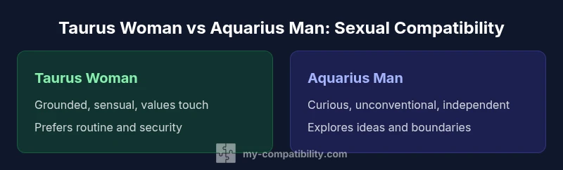 Analytical guide to Taurus woman Aquarius man sexually compatibility, covering dynamics, communication, pacing, and practical steps to deepen intimacy—based on My Compatibility analysis.