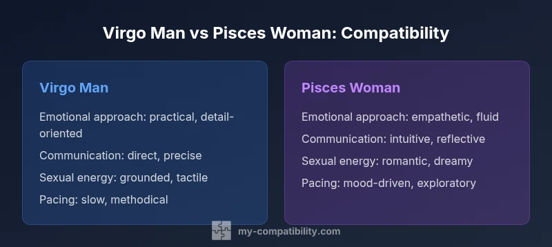 According to My Compatibility, the pairing of a Virgo man and Pisces woman often yields surprisingly strong sexual compatibility, blending Virgo’s steadiness with Pisces’s sensitivity. This comparison highlights how emotional trust, communication styles, and shared needs shape attraction and intimacy. virgo man pisces woman sexually compatible dynamics benefit from patient pacing and mutual vulnerability.